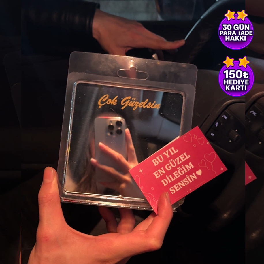 🌸 Çiçekli Ayna Kartı, Üzerindeki küçük buket ve içten mesajıyla hem romantik hem de özel bir armağandır.
